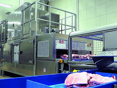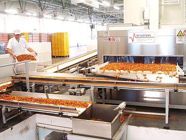 THERIO est un équipement RF dédié à la décongélation rapide et homogène des produits. Il permet de supprimer le recours à de vastes chambres de décongélation et de réduire fortement les pertes par exsudation (drip loss).