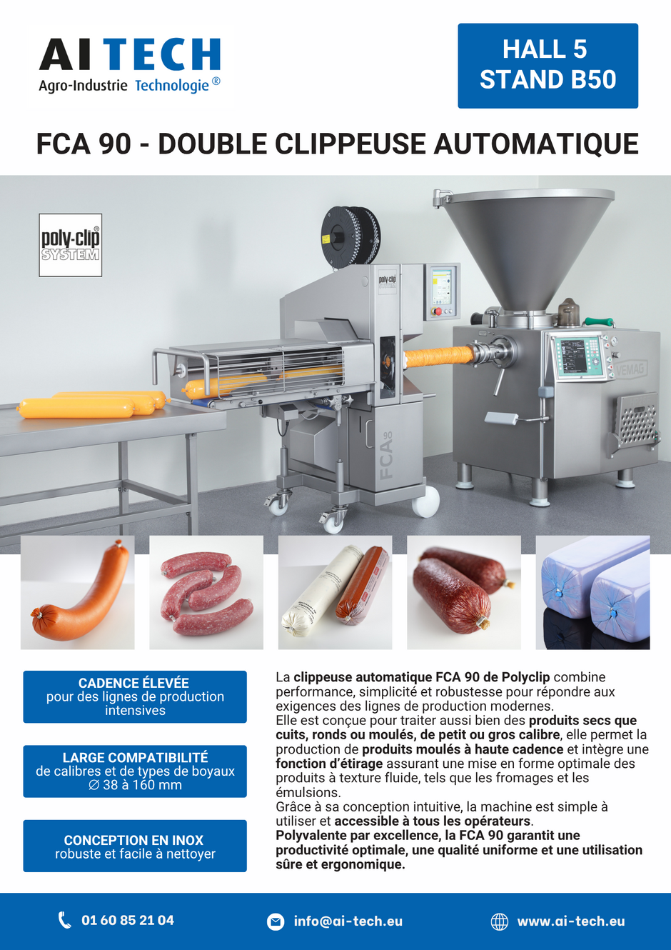 La clippeuse automatique FCA 90 de Polyclip combine performance, simplicité et robustesse pour répondre aux exigences des lignes de production modernes.